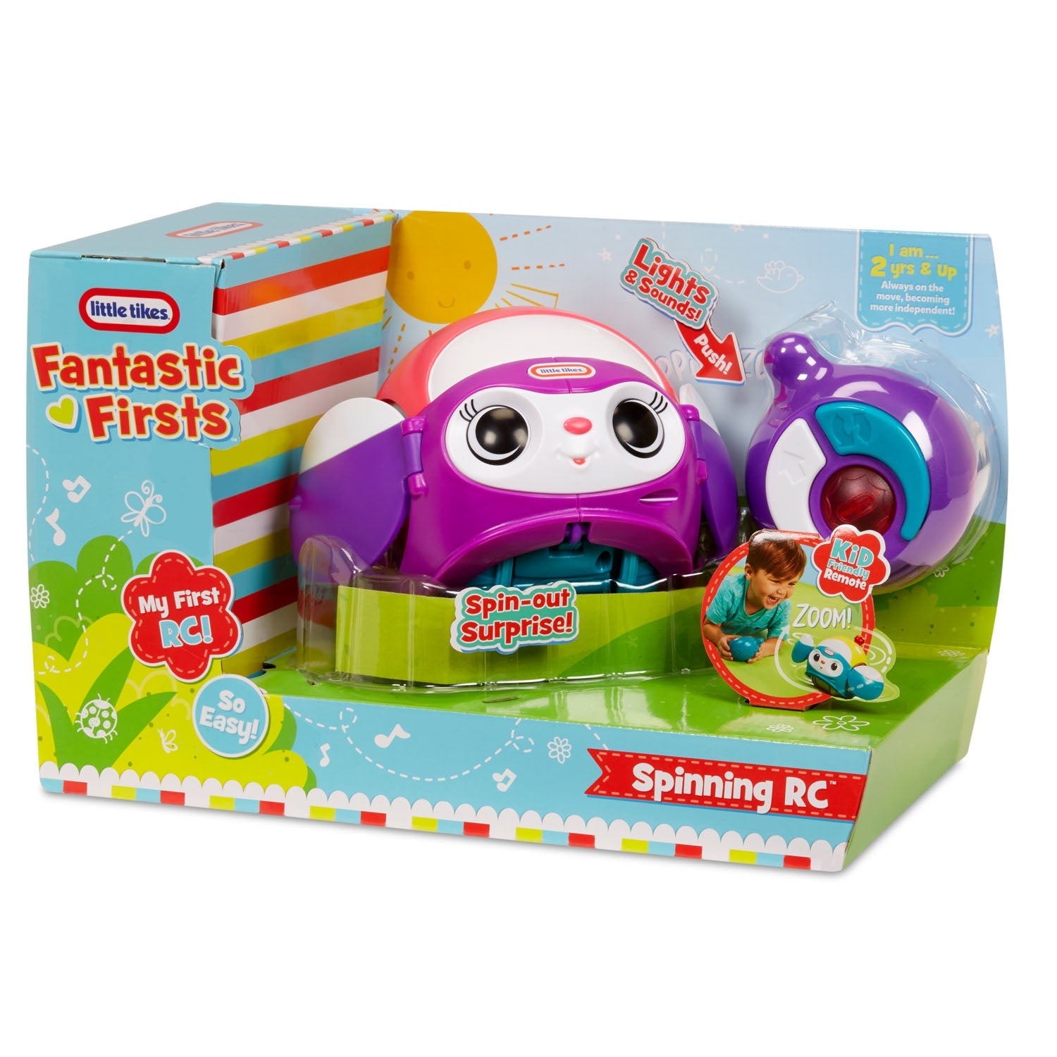 Fantastic Firsts Spinning RC?car has an easy-to-use beginner remote that makes it the perfect first RC car for kids! The doors swing open when it spins for a silly surprise!?
